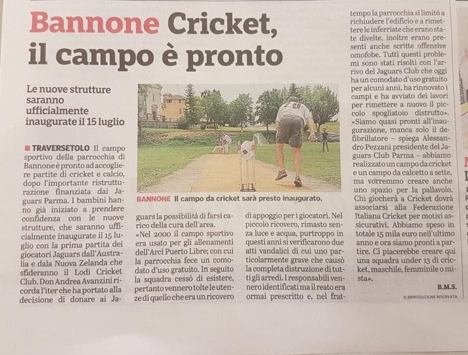 Alessandro Pezzani did not stop only to fund the Club but built a cricket ground himself with friends, makes an agreement with the Curia of Bannone that for 5 years will give free use of the field.