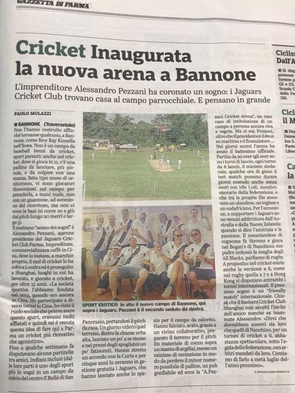 The Jaguars Cricket Club, the sports club was founded in 2013 by the entrepreneur Alessandro Pezzani in China.