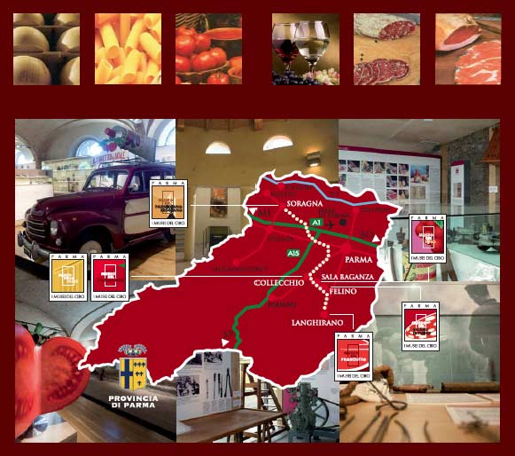 I gloriosi prodotti della terra parmense - Parmigiano Reggiano, Prosciutto di Parma, Salame Felino, Conserve di Pomodoro, Pasta e Vino dei Colli - nei Musei del Cibo trovano un luogo privilegiato di racconto e di valorizzazione.
